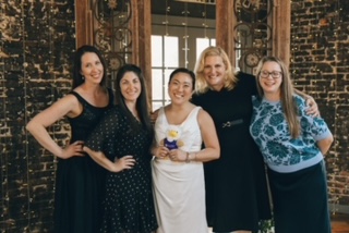 | Deanna Spiotta ’09 | ( | Music | ) | Left to Right: Lisa Salvaggio McKim `08, Gina Totaro `09, Allyson Smith `09 `12G, Deanna Spiotta Carlin `09, Eric Carlin, Chelsea Carhart Lehmann `09, Karen Hertline `09 `11G, Adele Flanagan Rosati `09, Lindsey Eagan `08A, `09 `11G, Katelyn Marasco `09. | ![]() | Deanna Spiotta `09, married to Eric Carlin, June 3, 2023. |