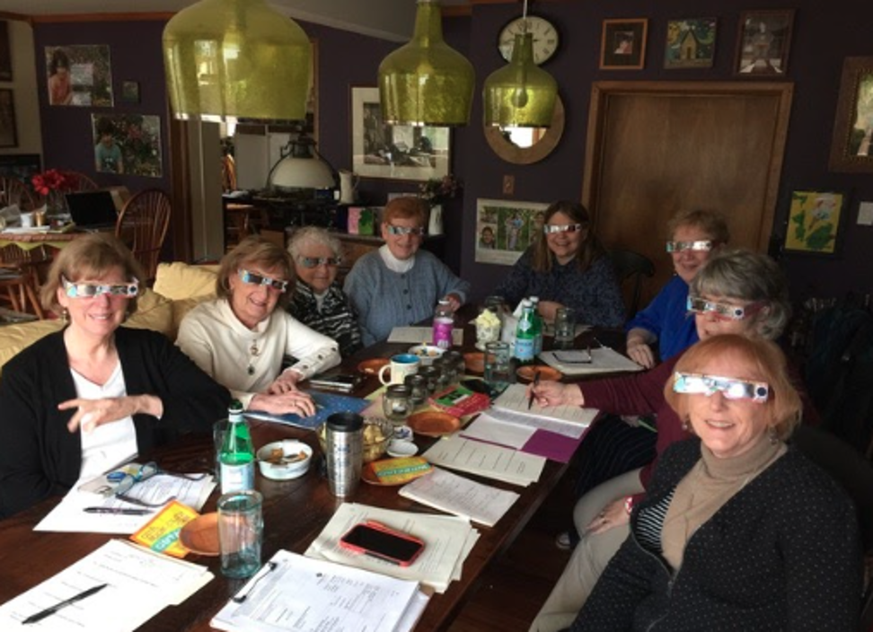 | Karen Moore Larimer ’66 | ( | English Literature | ) | Cathy LaLonde Butry `66, Jeanne Gaser McElhinney `66, Margie Weider `66, Barbara Olmstead Long `66, Camille Vistocco DelVecchio `66, Nora Brennan Shannon `66, Mary Randall McMahon `66, Donna Eddy Treat `66. The women of the Class of 1966, have maintained their close connection since their graduation from Nazareth College (now University) 58 years ago by sharing in Class Reunions on campus and decade birthday parties arranged by a classmate on Edisto Island, SC. They have read together for their book club and met for Mystery Tours, Lakeside Luncheons, zoom talks, volunteer activities and even Friday night poker games. To cap all these activities, this year over 40 classmates from across the country will gather April 7-9 at a rental property in the Finger Lakes as the universe celebrates their 80th birthdays with a total eclipse of the sun! | ![]() | |