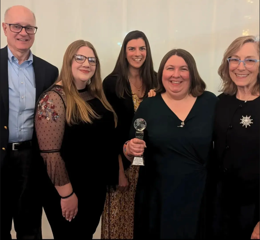 | Denise Mahns ’04 | ( | French | ) | Dr. Denise Mahns has been recognized by the New York State Association for Language Teachers (NYSAFLT) as the New York State World Language Teacher of the Year. The Ruth E. Wasley Distinguished Teacher Award is given to someone who has demonstrated excellence in K-12 foreign language teaching. Mahns was honored at the NYSAFLT Annual Conference in November, where she gave an acceptance speech highlighting what she called the crisis provoked by a teacher shortage. She encouraged conference attendees to support language programs and teacher preparation programs at the college level, and cited her own giving directed to Nazareth College's French House as an example of "paying it forward.". | ![]() | Dr. Mahns and her Fayetteville-Manlius colleagues Richard Ernst, Alana Wielgosz, Sarah Woodward-Jones and Kate Stewart; Dr. Mahns delivers her acceptance speech; Dr. Mahns and her certificate and award. |