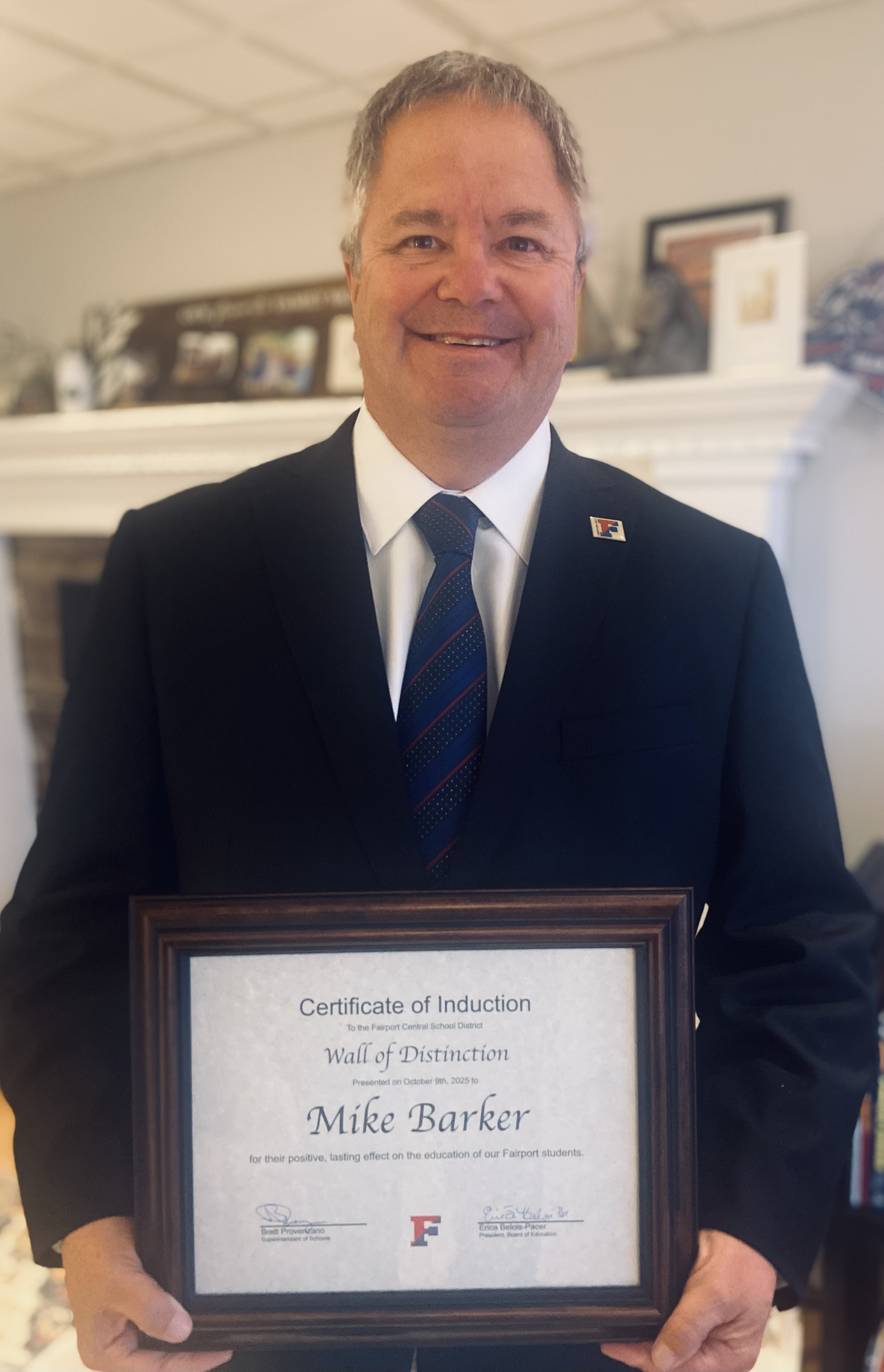 | Michael Barker ’91G | Mike was inducted into the Fairport Central School District Educator’s Wall of Distinction in October of 2025. He was recognized for over 25 years as a teacher and a coach in the district. | ![]() | ||||