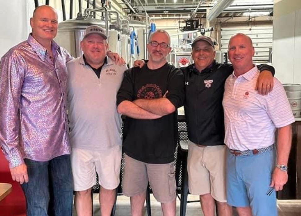 | Christopher Nothnagle ’99 | ( | Studio Art, Theatre Arts | ) | During Naz Weekend, a bunch of alumni gathered at alum-owned Nine Spot Brewing downtown. As part of Nazareth's centennial celebrations, we've partnered with Chris Nothnagle `99 and Nine Spot to offer our centennial brew. | ![]() | From left to right: Alan Wood `88, Todd Calman `87, Chris Nothnagle `99 (co-owner of Nine Spot), Joe Convertino `87, Chris McCaffrey `87. |