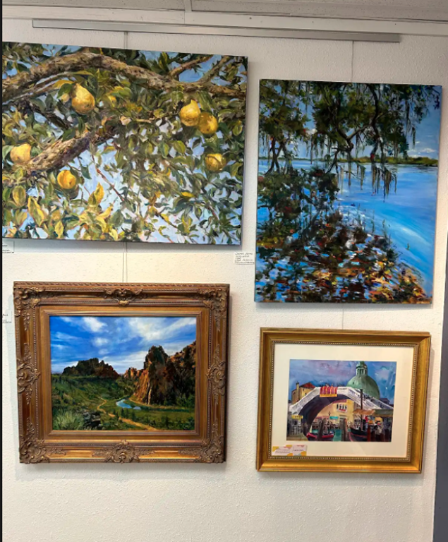| Eileen McGee Pestorius ’61 | ( | English Literature | ) | Submitted a photo that shows her wall in a coop art gallery in Georgetown TX, just north of Austin. She still painting and teaching a bit, and has a life rich with friends and family both near and far. | ![]() | |